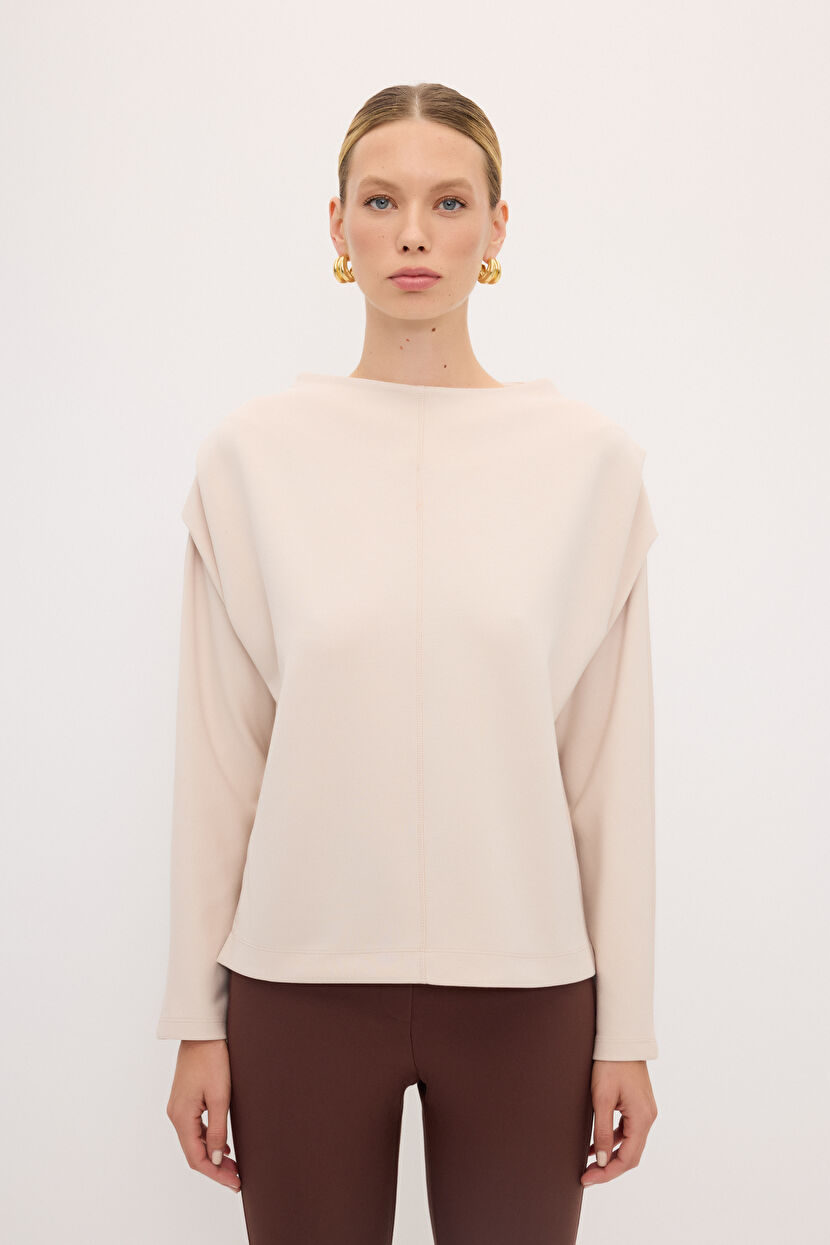 Beige Pleated Modal Blouse