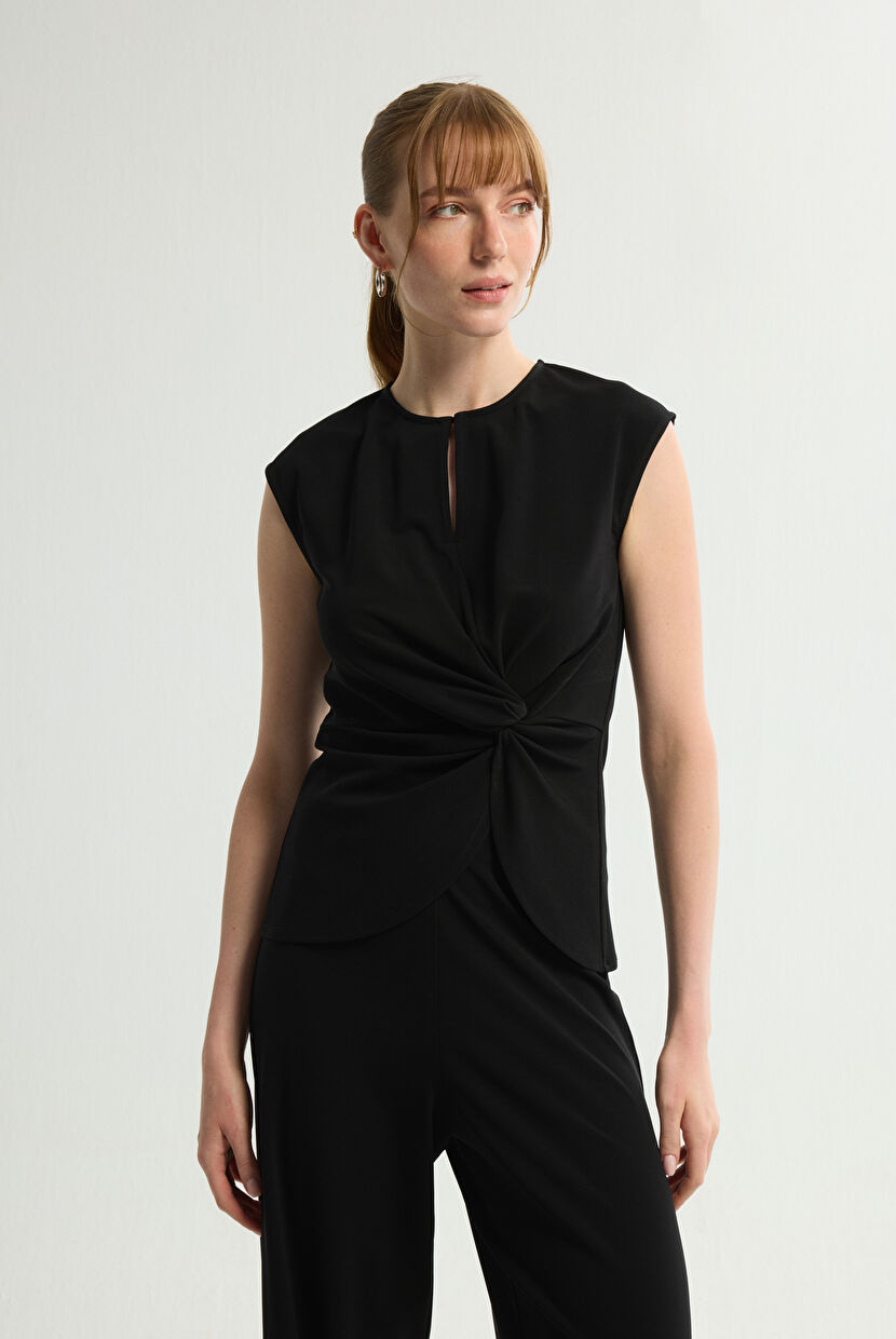 Black Knitted Blouse with Tie Detail
