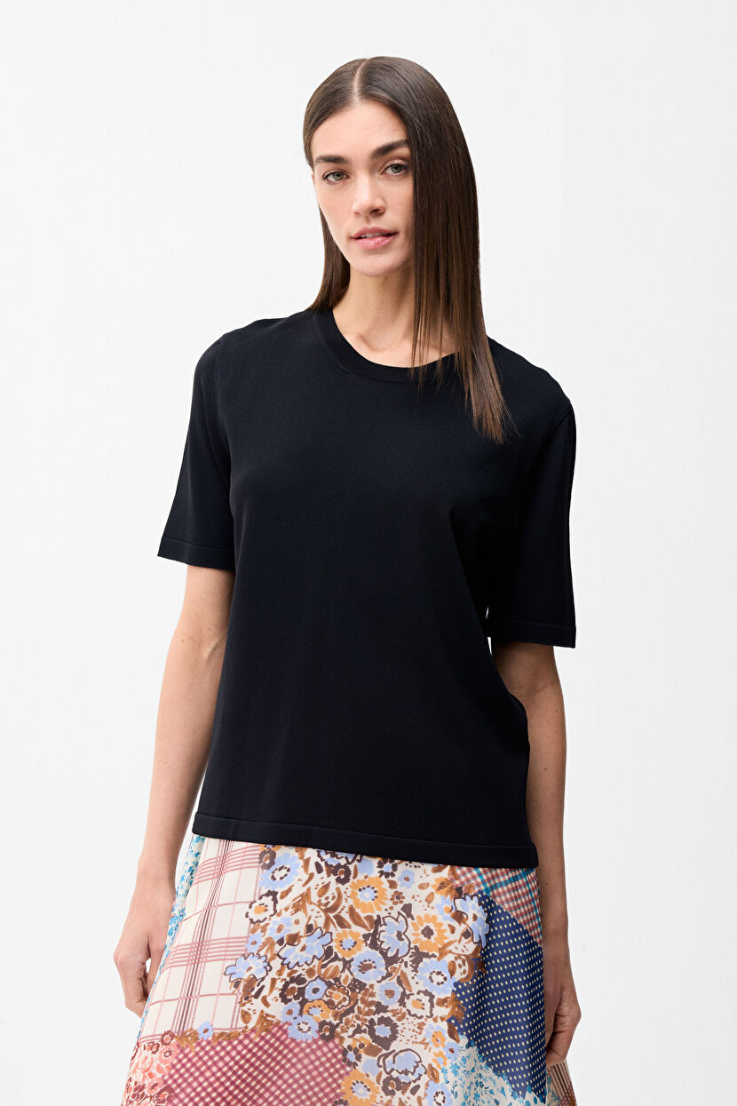 Black Short Sleeve Knitwear Blouse