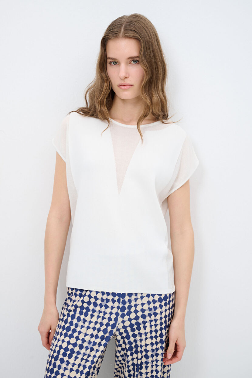 Bone Tulle Detailed Knitwear Blouse