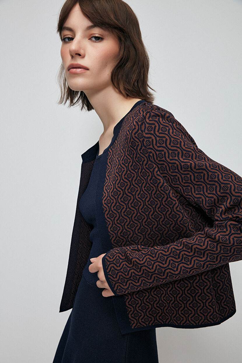 Navy Blue Patterned Knitwear Cardigan