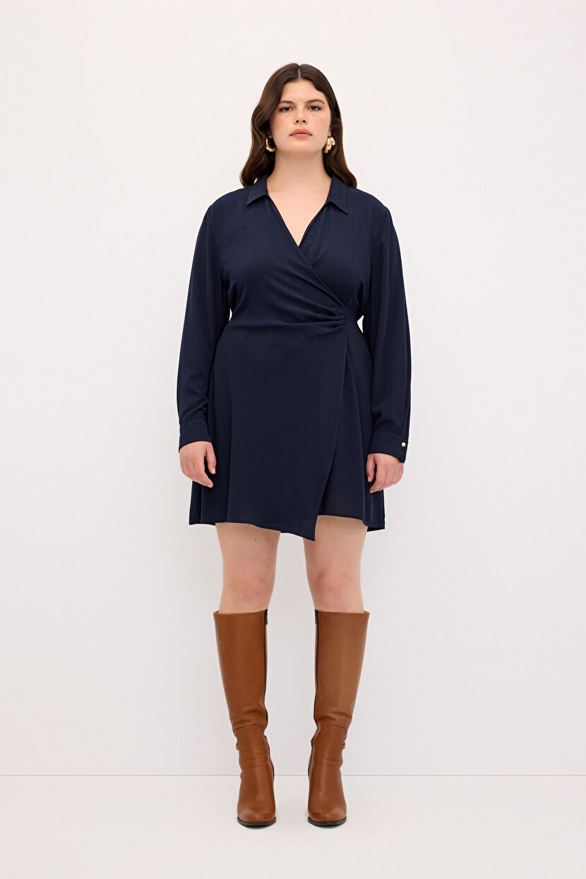 Navy Blue V Neck Dress