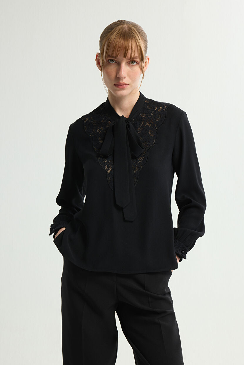 Black Long Sleeve Tulle Detailed Knitwear Sweater