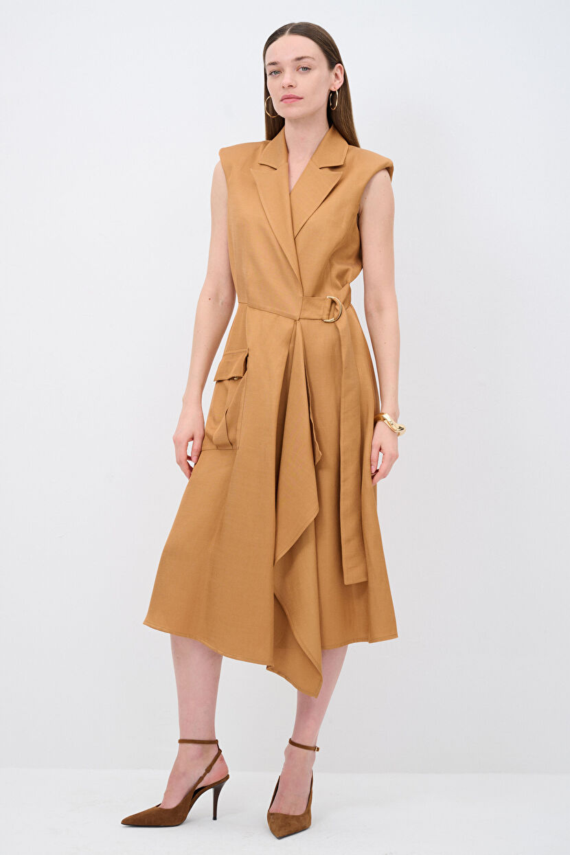 Brown Off-the-Shoulder Sleeveless Jacquard Dress