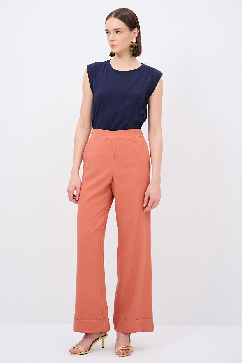 Orange Viscose Trousers with Pockets