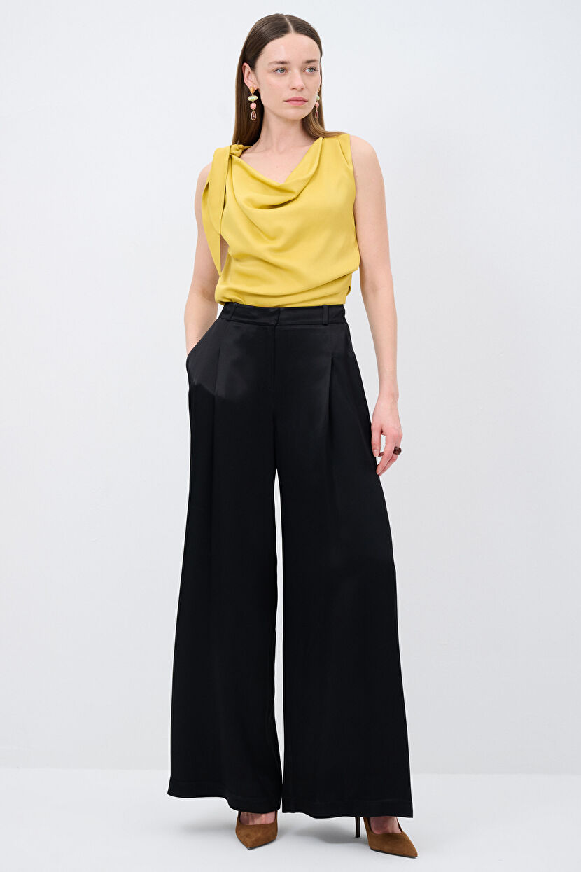 Yellow Pleated Wide Leg Trousers