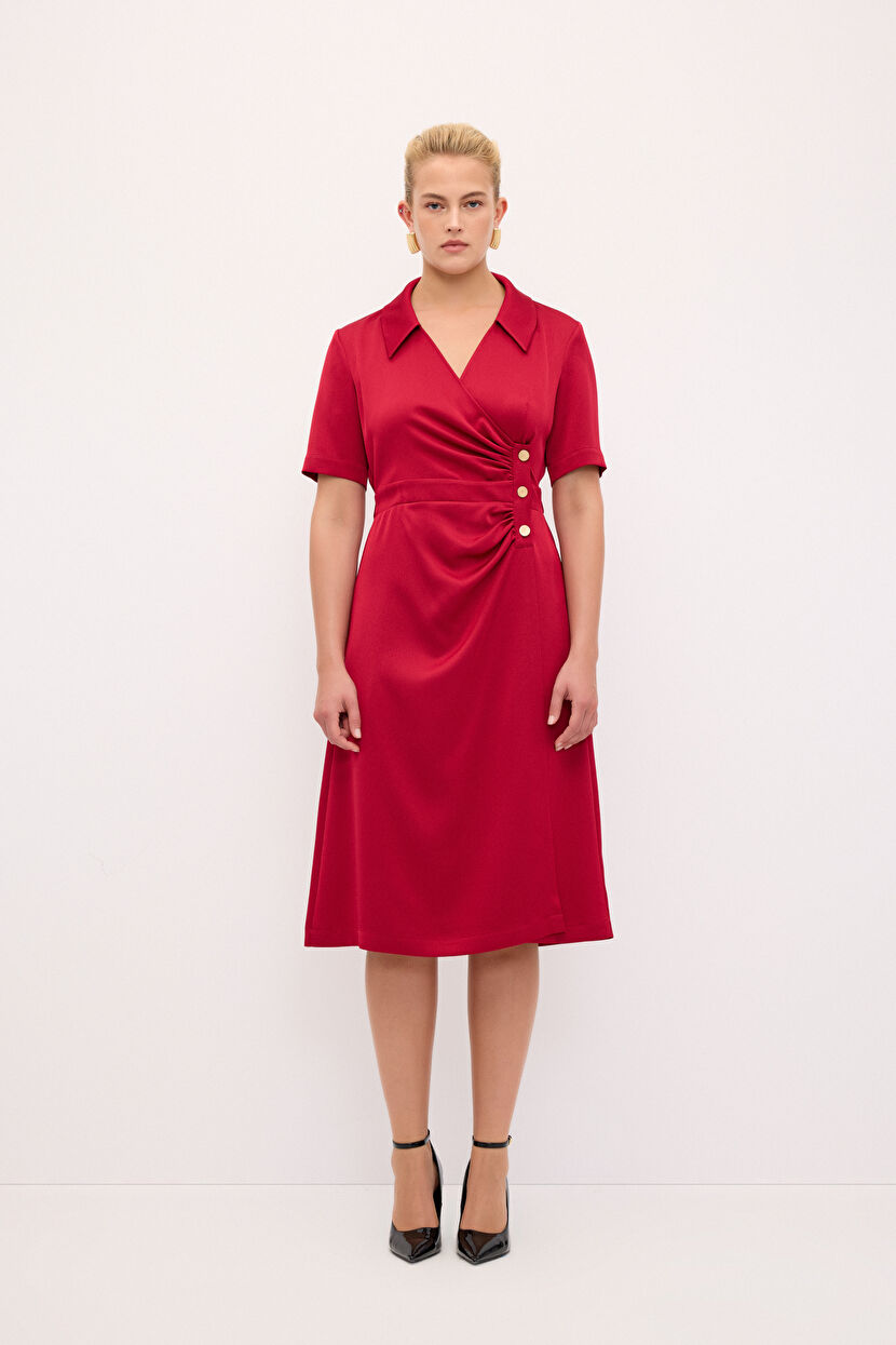 Claret Red Shirred Short Sleeve Dress