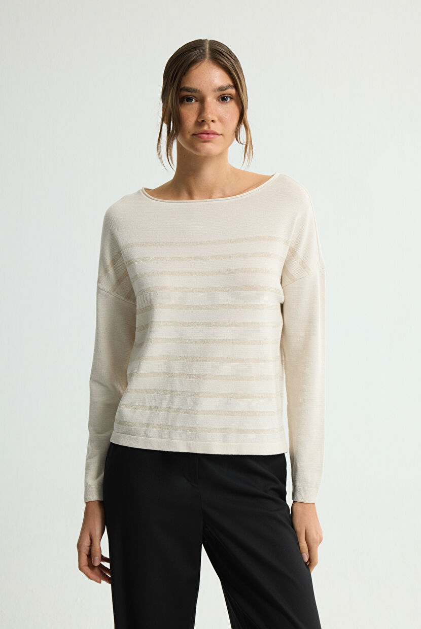 Bone Silvery Detailed Knitwear Sweater