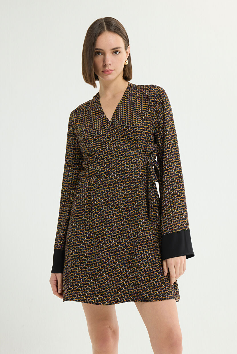 Brown Wrap-Around Envelope Pattern Dress 124L9776000-1B8 | adL