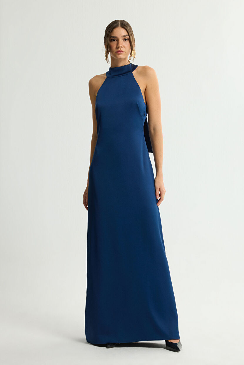Navy Blue Long Dress with Tie 124L9794000-018 | adL