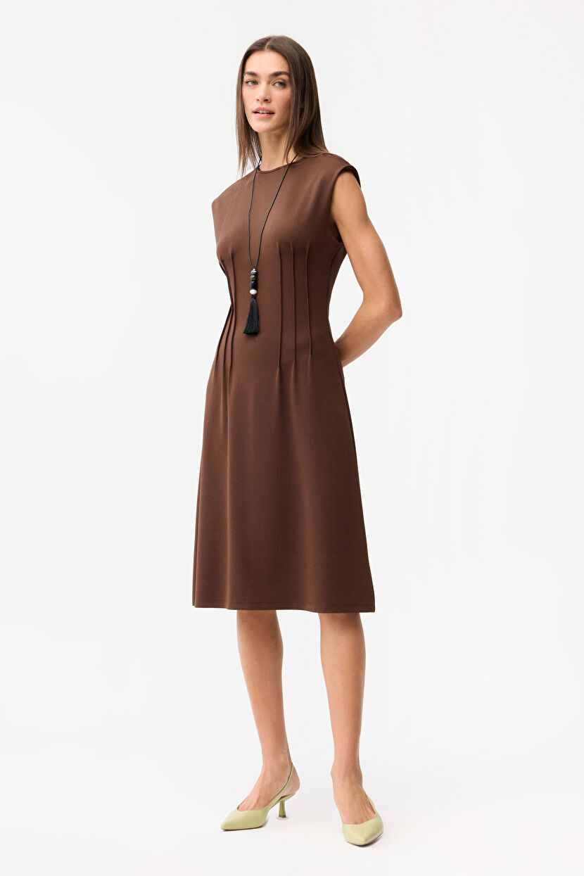 Brown Ribbed detailed dress
