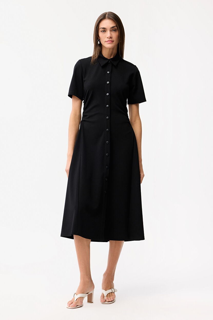 Black Shirring detailed dress with collar sides