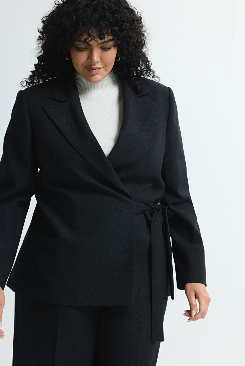 Black Glittery Tie Detail Wrap Jacket