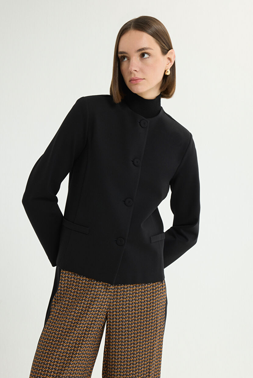 Black Mono Jacket with Pocket Flaps