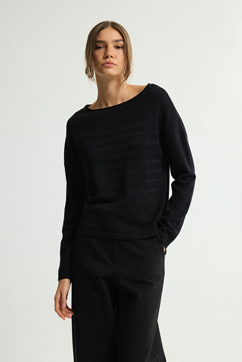 Black Silvery Detailed Knitwear Sweater