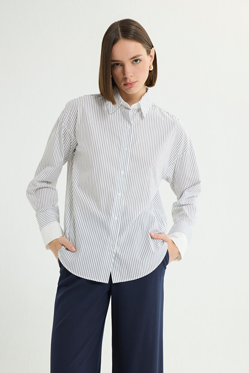 Navy Blue Garni Detailed Shirt 130L9740000-018 | lmb