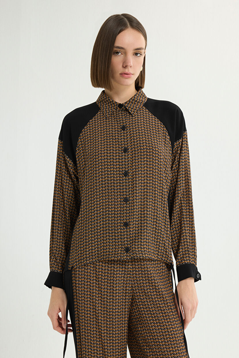 Brown Lace-Up Detailed Patterned Shirt 130L9774000-1B8 | lmb