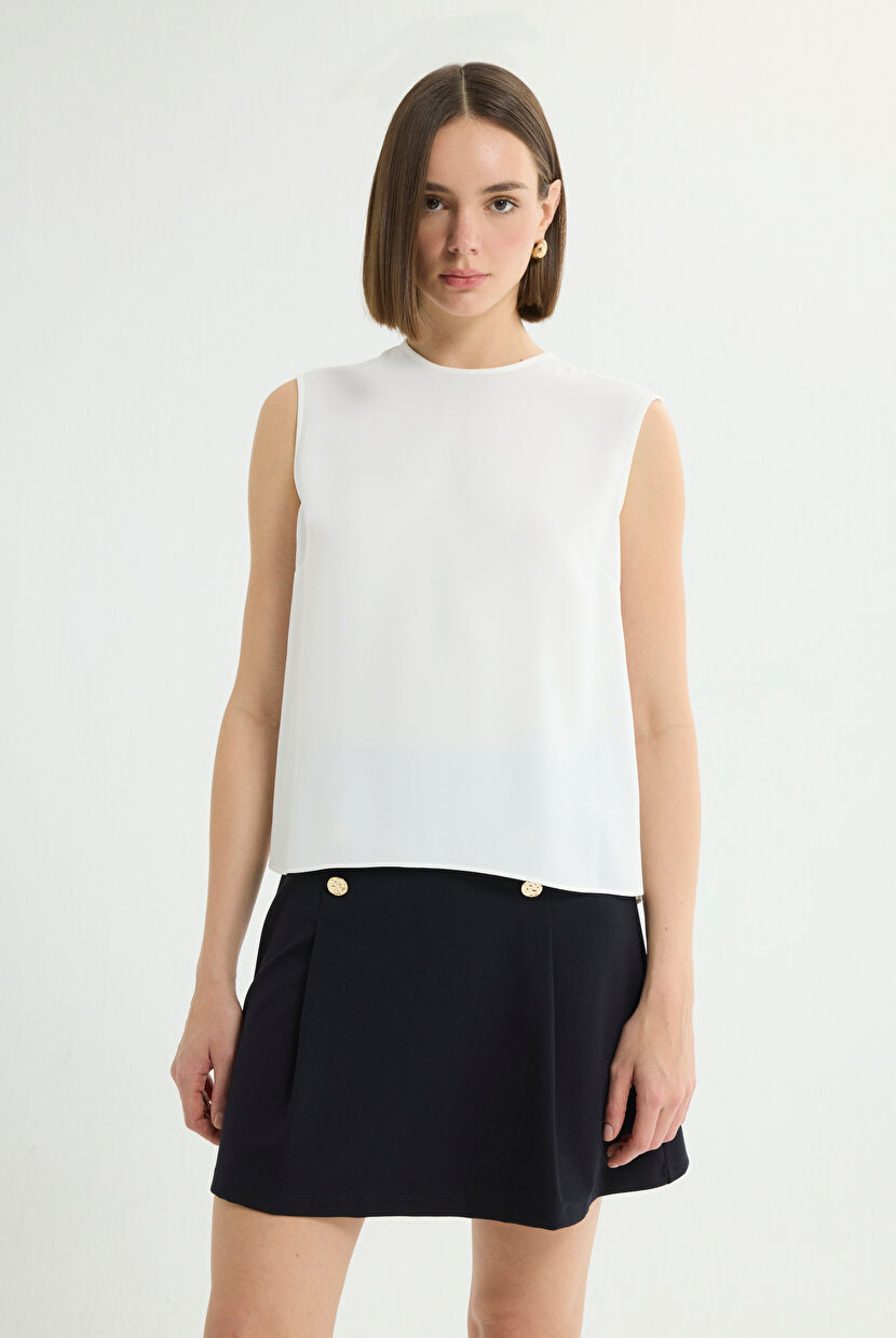 Bone Bicycle Neck Back Snap Detail Sleeveless Blouse