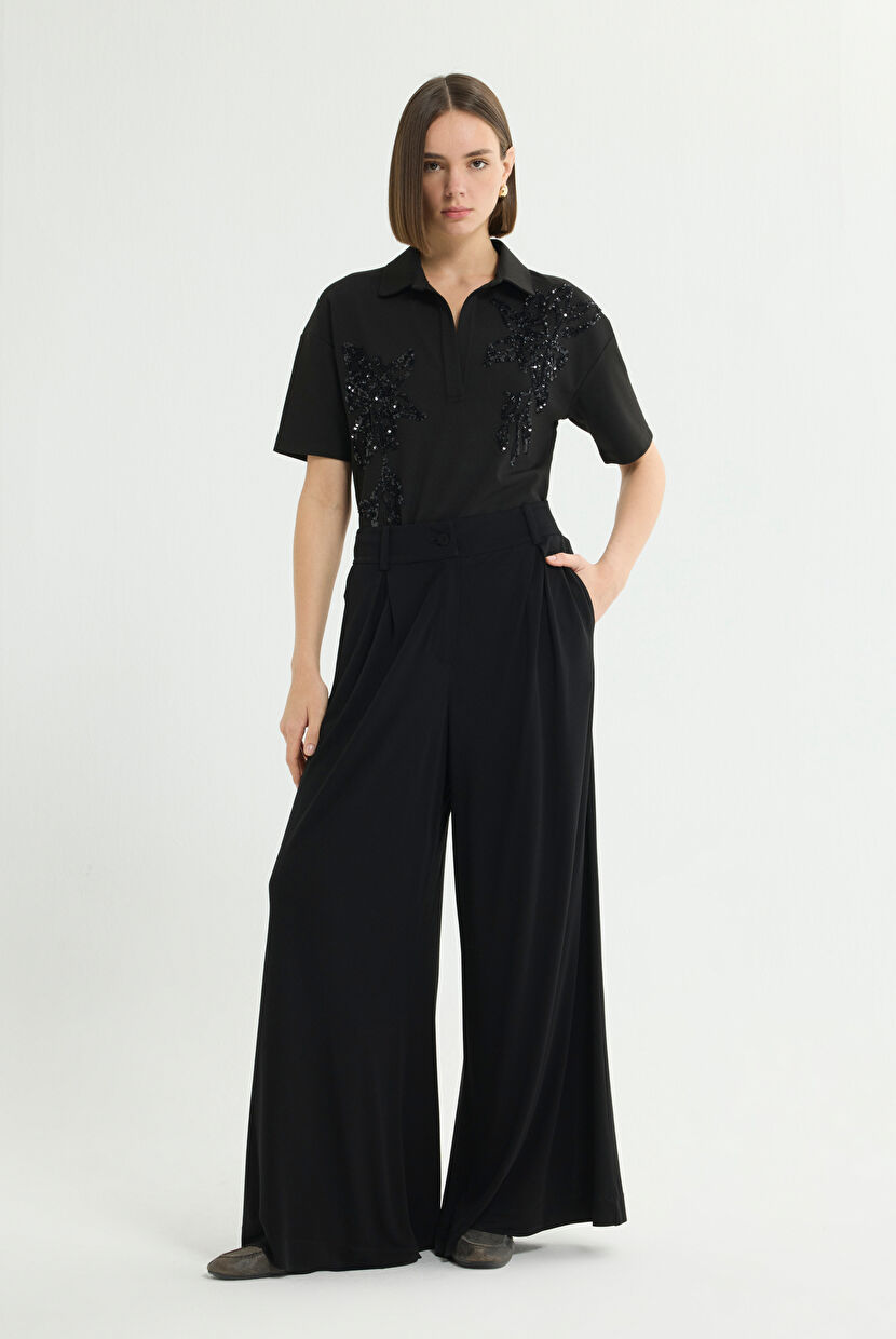 Black Belt Detailed Pleated Loose Pants