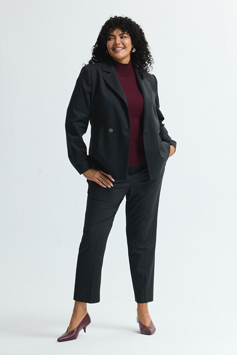 Grey Striped Double Breasted Jacket