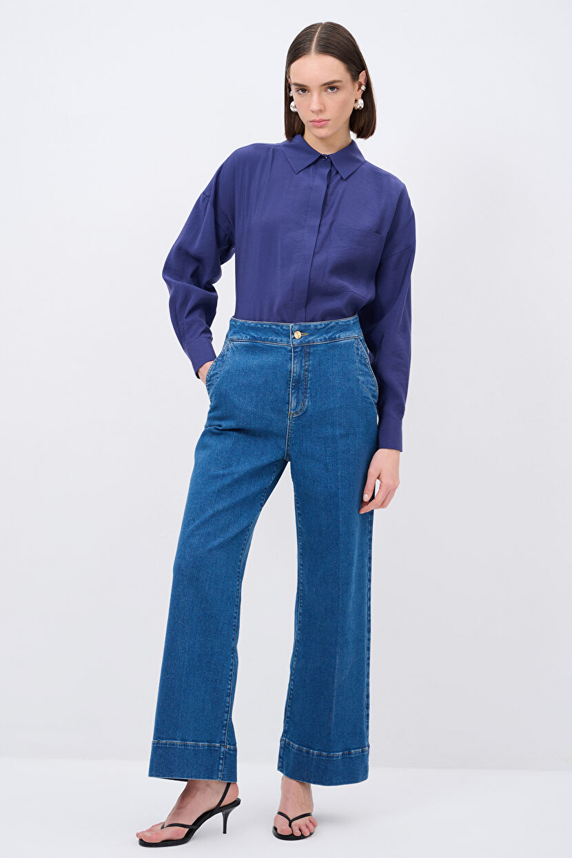 Navy Blue Wide Leg Jean