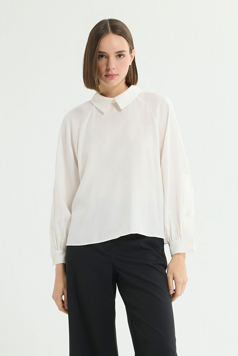 Bone Button-Back Raglan Sleeve Shirt