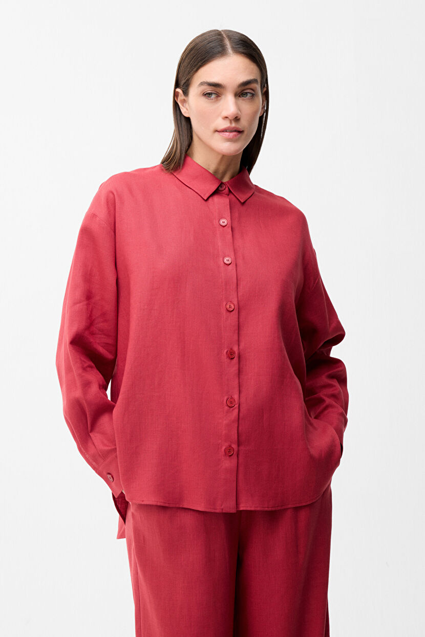 Claret Red Trousers with Linen Pockets with Elastic Waist