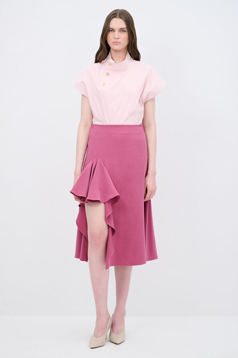 Pink Flounced Midi Skirt