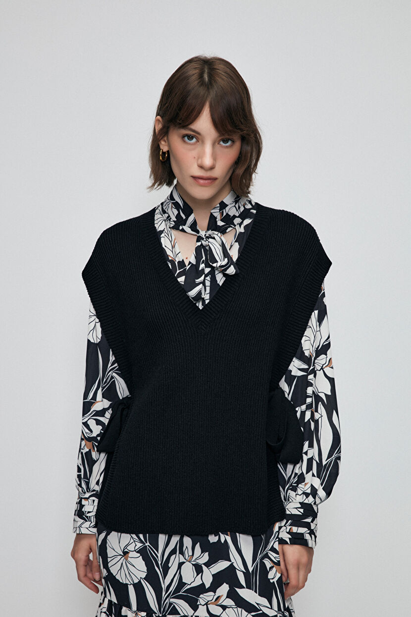 Black Side Tie Knitwear Sweater
