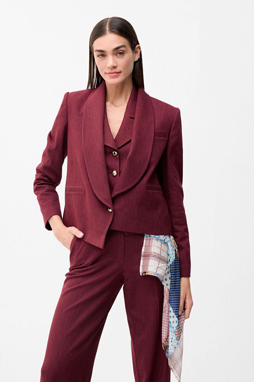 Claret Red Shawl Collar Asymmetric Gabardine Jacket