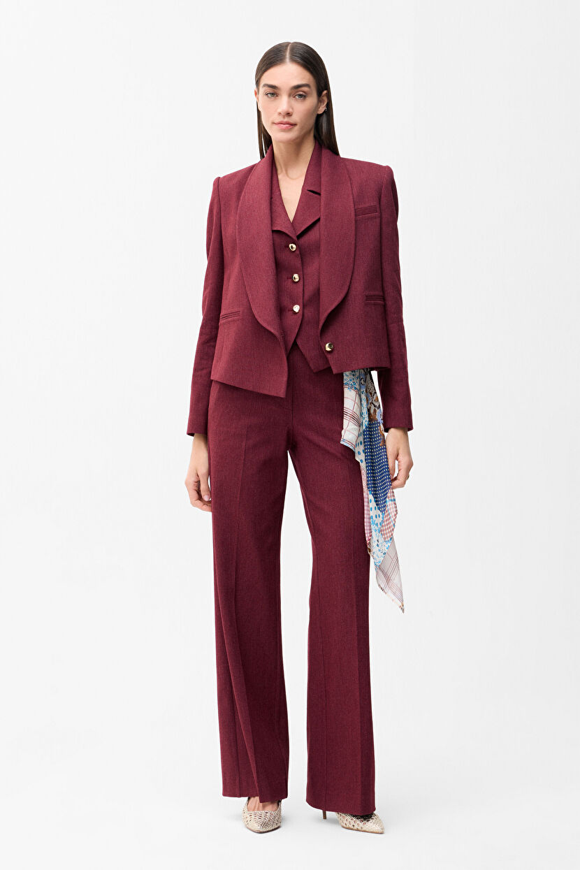 Claret Red Shawl Collar Asymmetric Gabardine Jacket