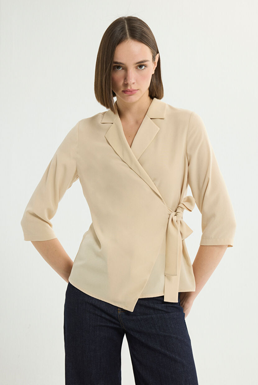 Bej Uzun Kol Anvelop Bluz