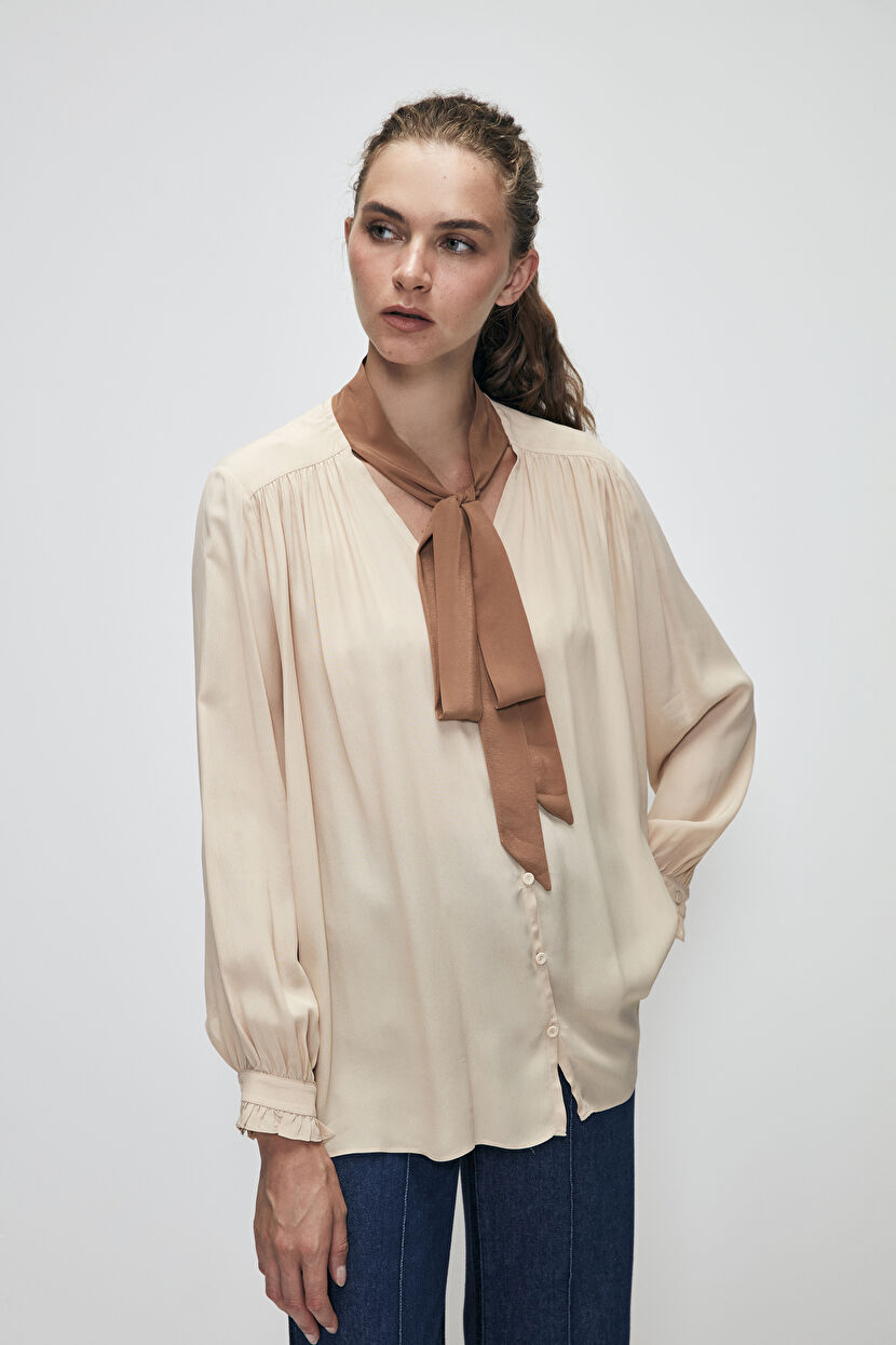 Bej Bağlamalı Bluz