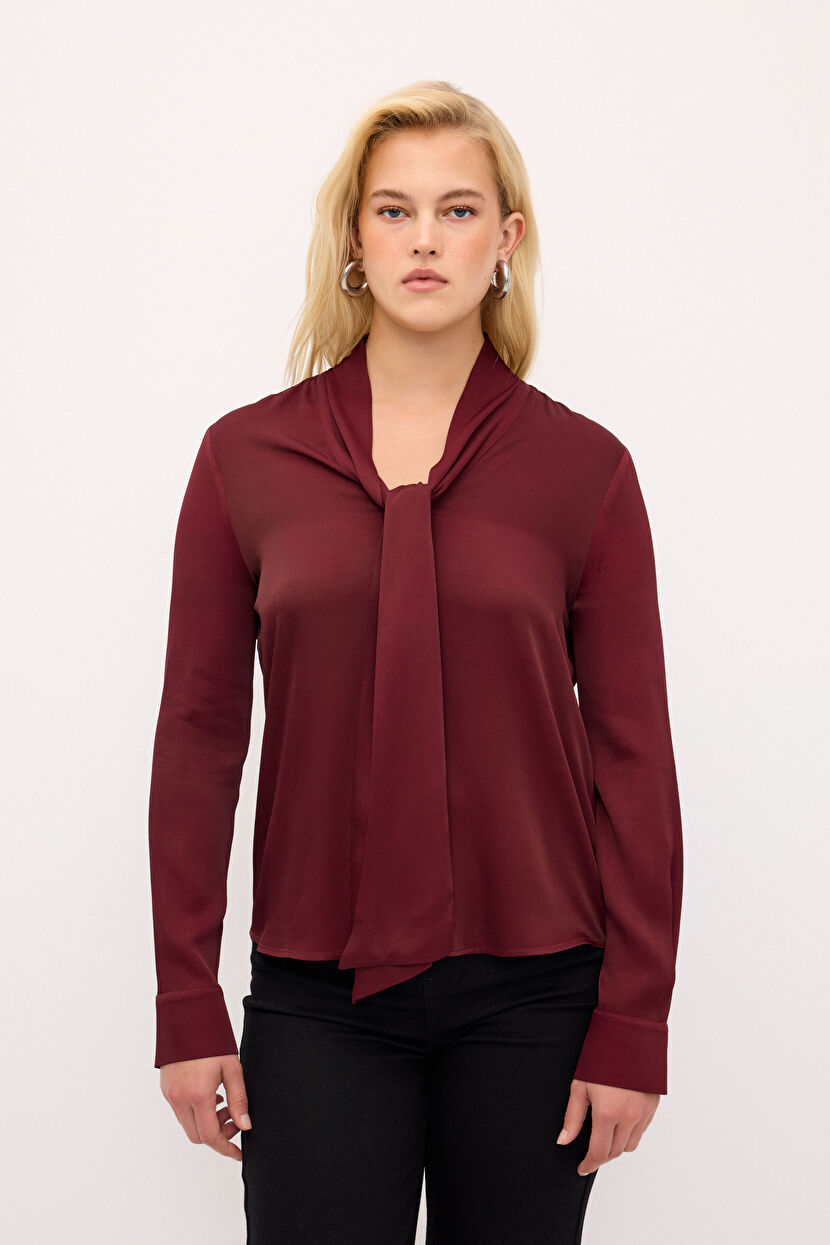 Bordo Bağlama Detaylı Bluz