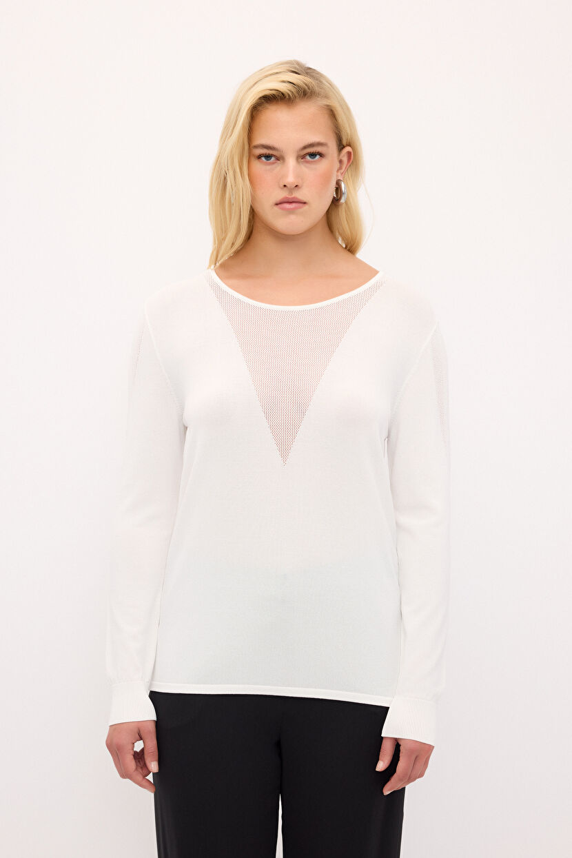 Kemik Yakası File Detaylı Triko Bluz