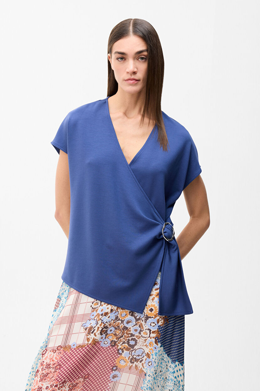 Lacivert Kruvaze kadın tokalı bluz