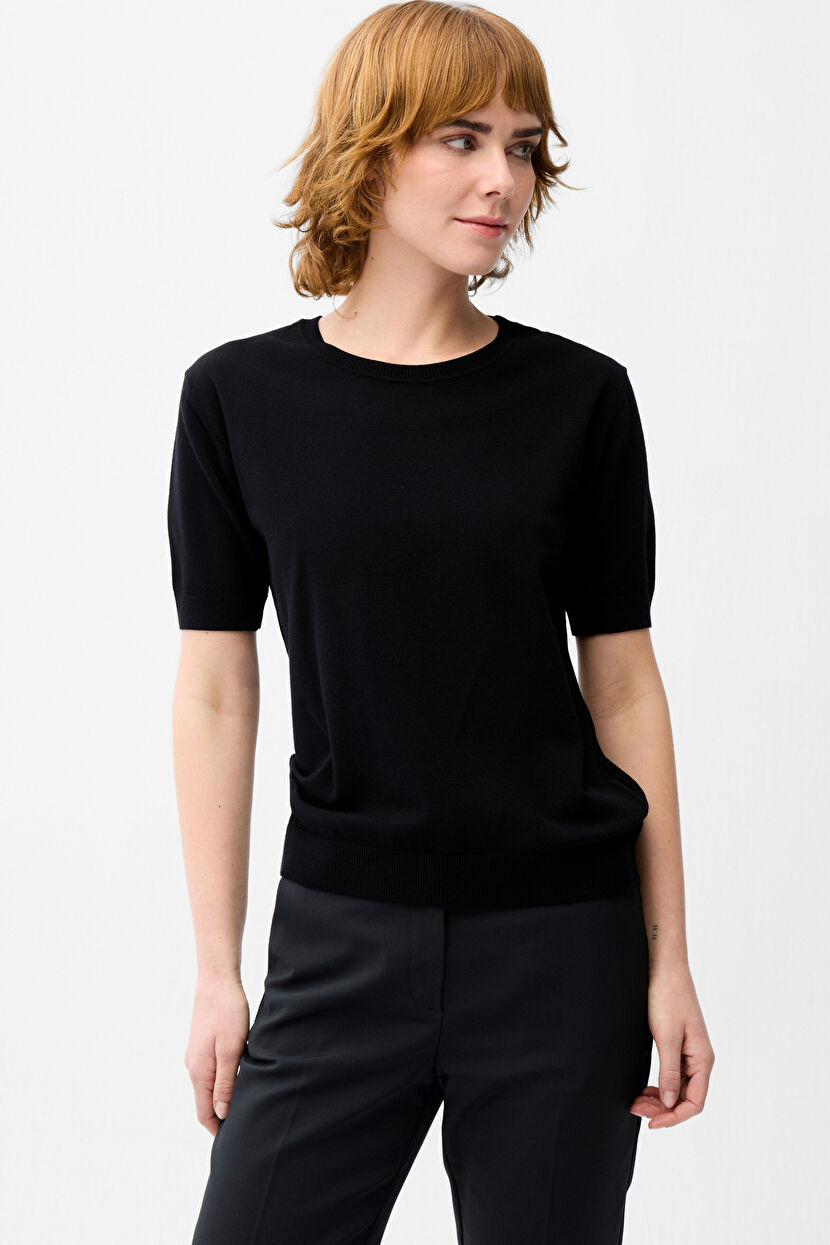 Siyah Kısa Kol Trıko Bluz