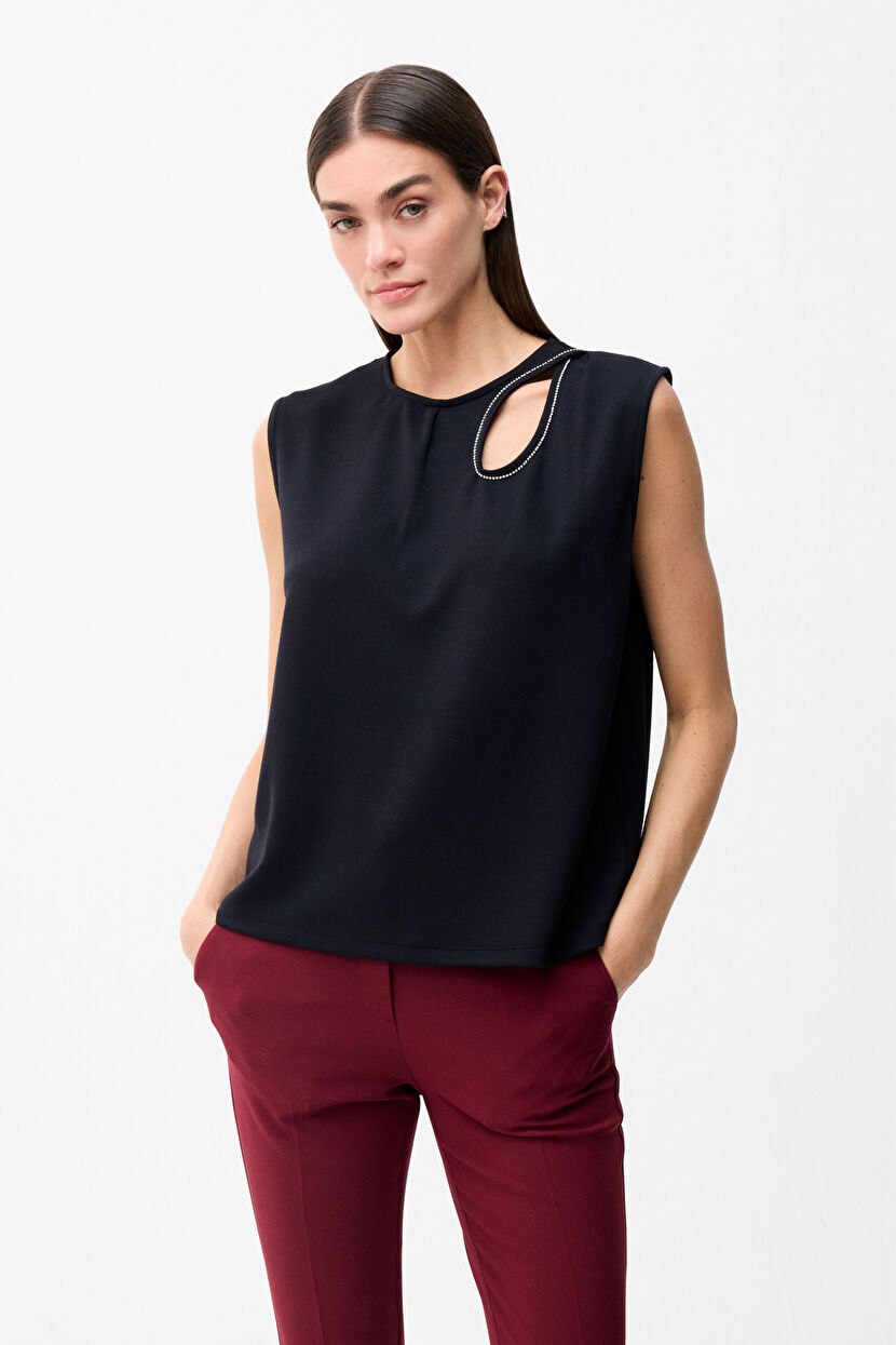 Siyah Taşlı damla detaylı bluz