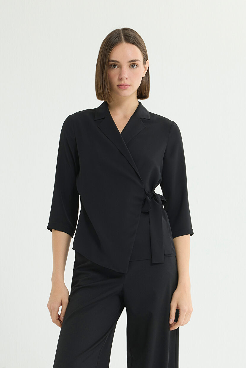 Siyah Uzun Kol Anvelop Blouse