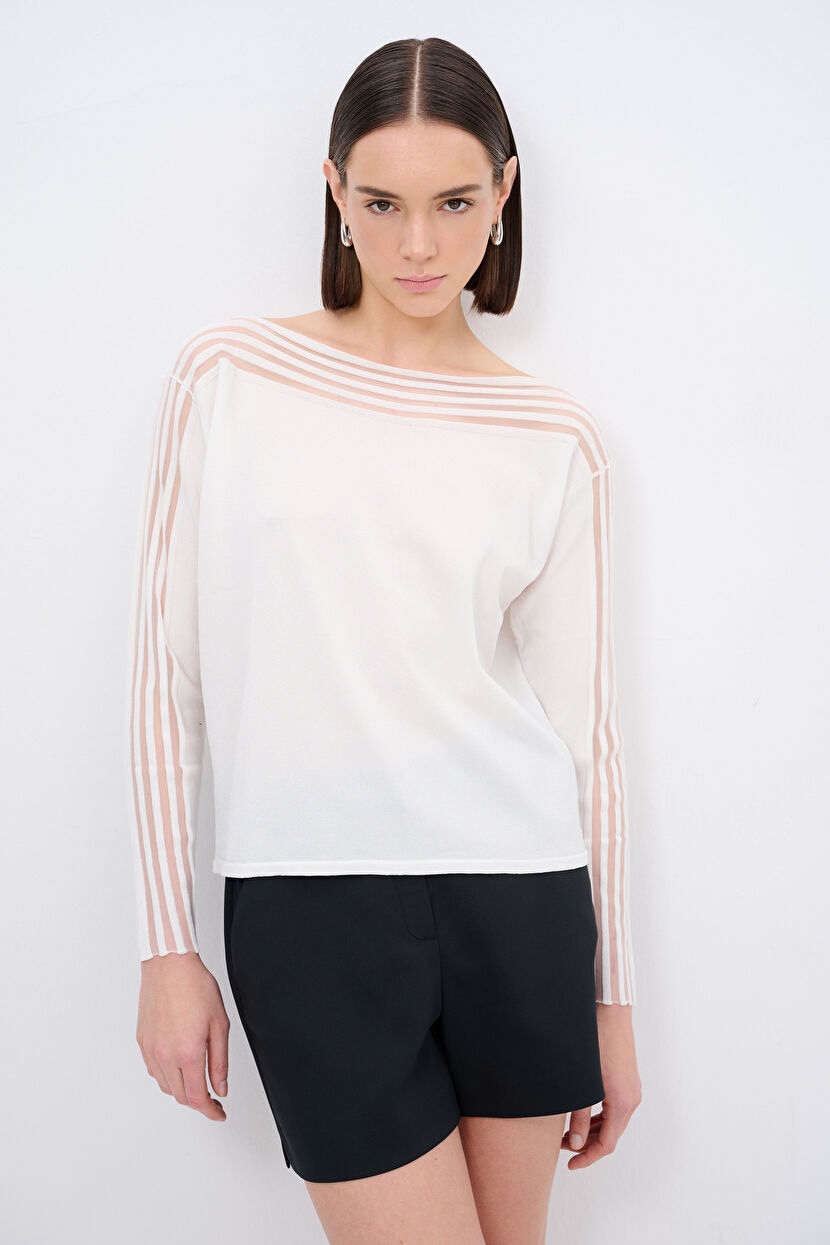 Vanilya Uzun Kol Tül Detaylı Triko Kazak