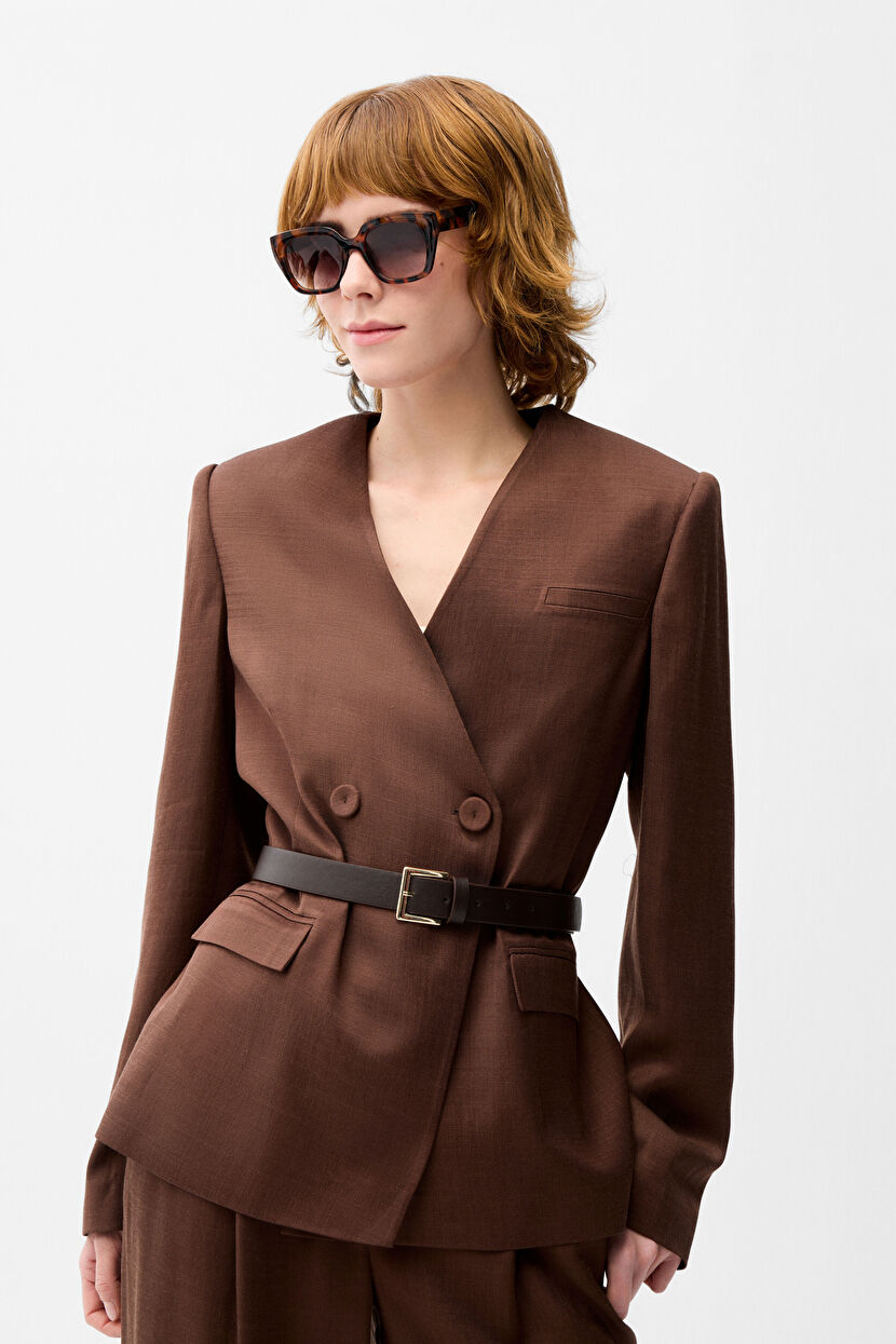 Kahverengi Kemer Detaylı Ceket