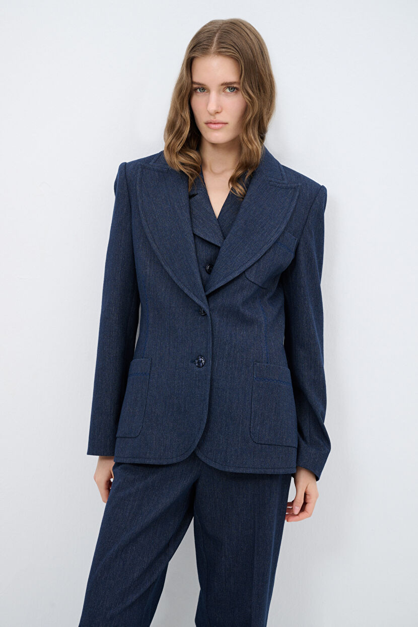 Lacivert Jean Görünümlü Mono Kapama Ceket