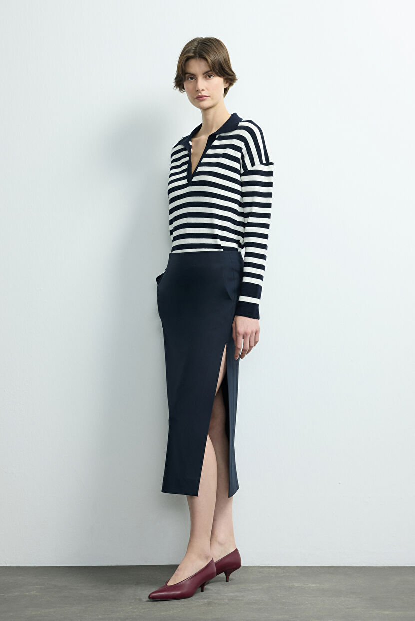 Lacivert Gabardin Midi Etek