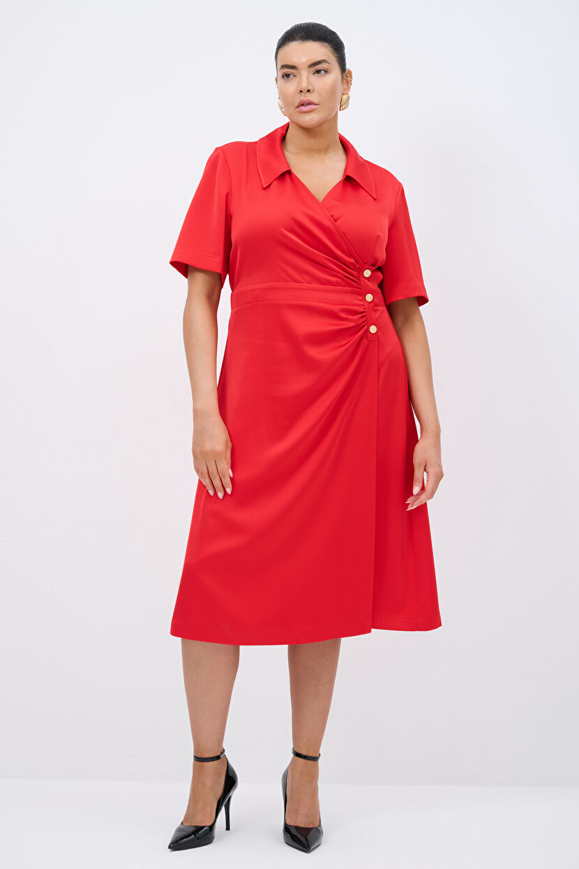 Kırmızı Büzgülü Kısa Kollu Elbise