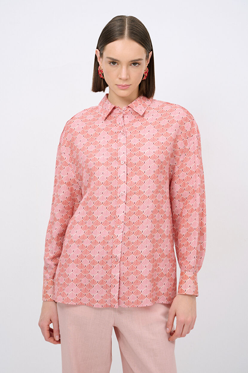 Kahverengi Desenli Keten Gömlek