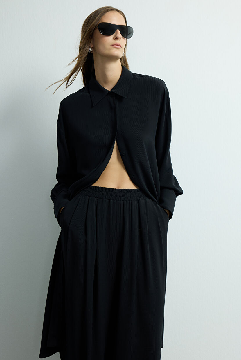 Lacivert Önden Düğmeli Uzun Gömlek