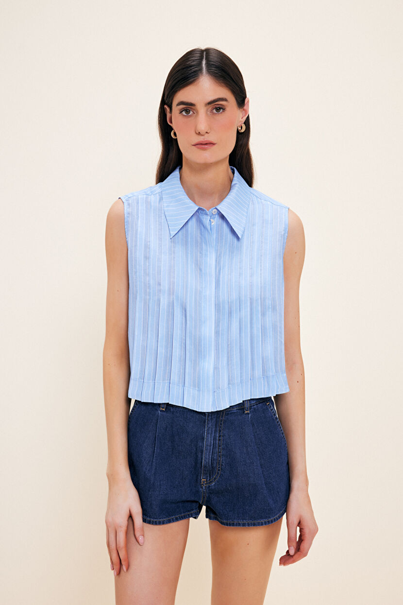 Mavi Moda Tutkusu Çizgili Kolsuz Gömlek
