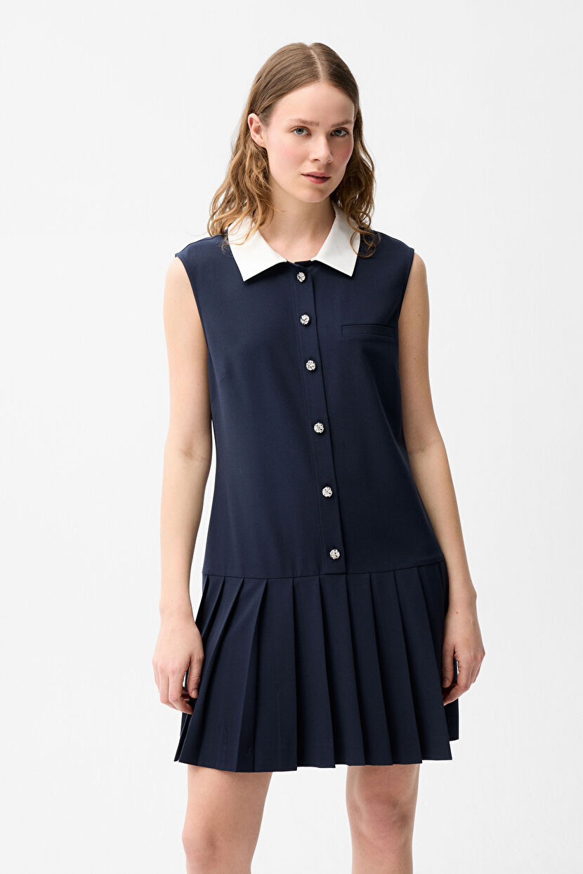 Lacivert Erkek Yaka Mini Elbise
