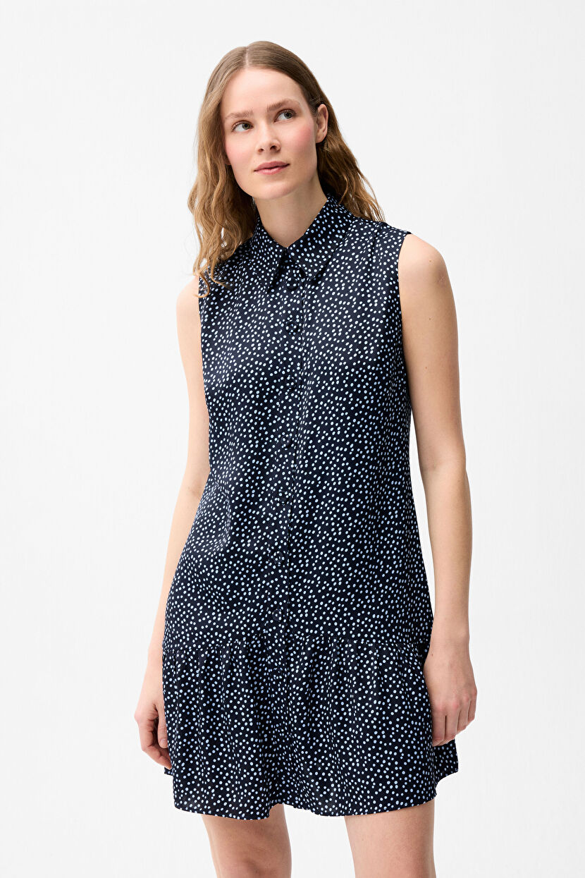 Puantiye Lacivert Puantiyeli Kolsuz Pileli Elbise