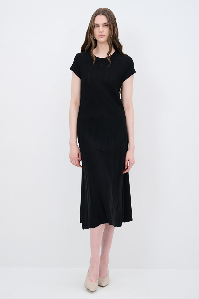 Siyah Kısa Kollu Triko Elbise